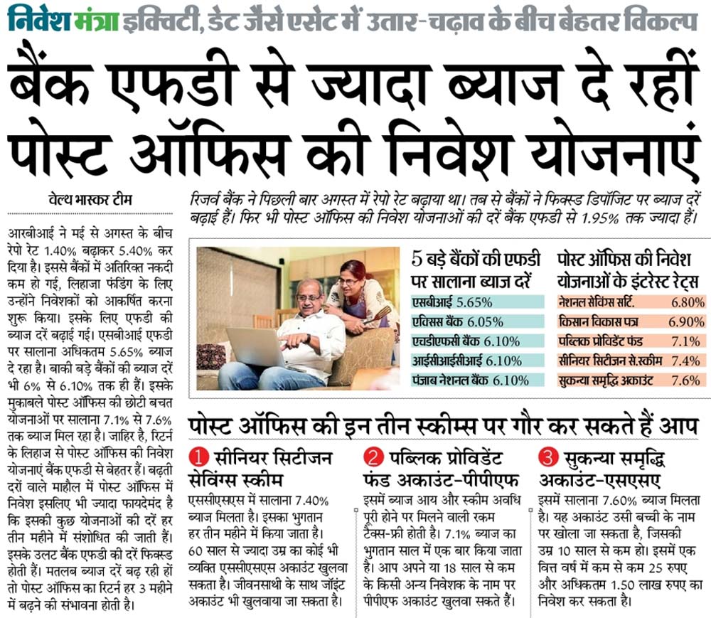 बैंक एफडी से ज्यादा ब्याज दे रहीं पोस्ट ऑफिस की निवेश योजनाएं