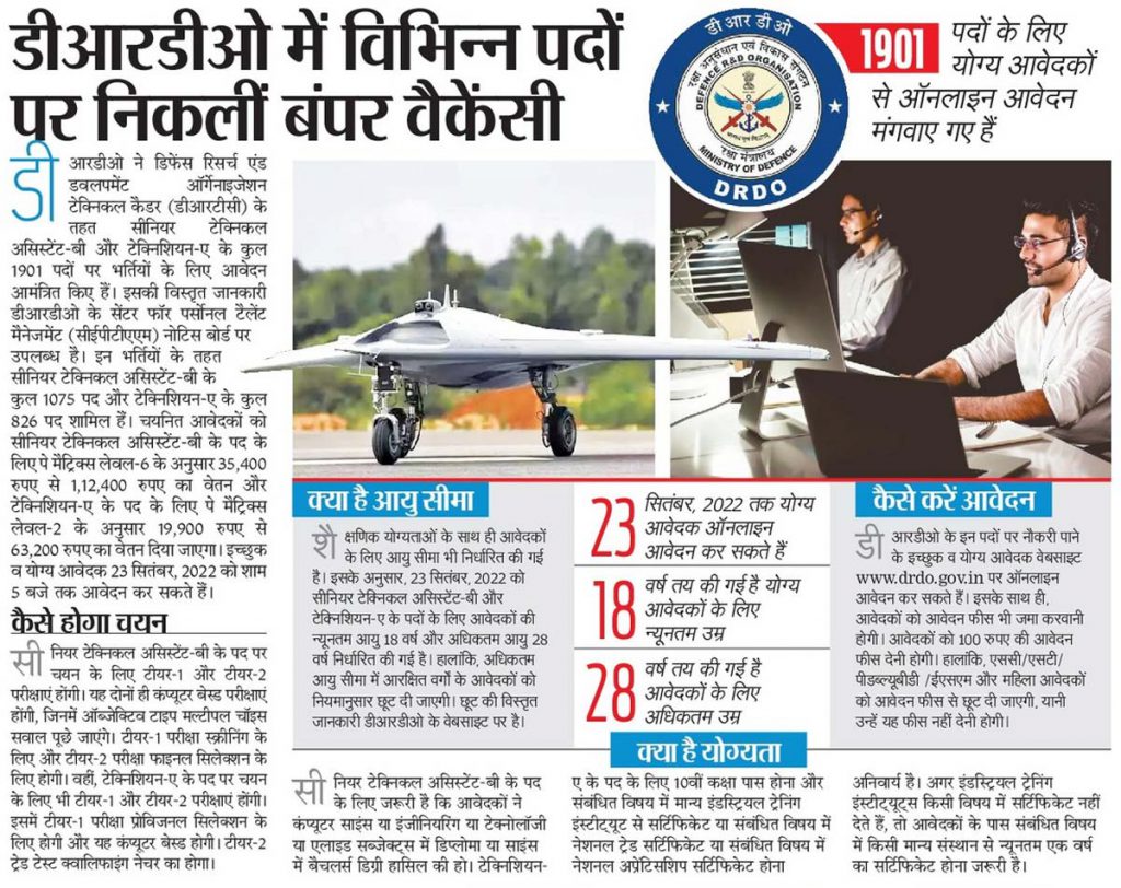 डीआरडीओ में विभिन्न पदों पर निकलीं बंपर वैकेंसी